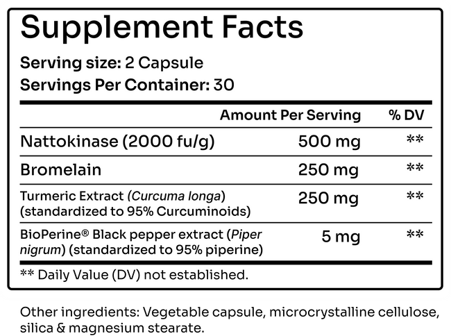 Nattokinase + bromelain keep clearing residual debris, promoting smoother blood flow and a steady rise in daily energy.